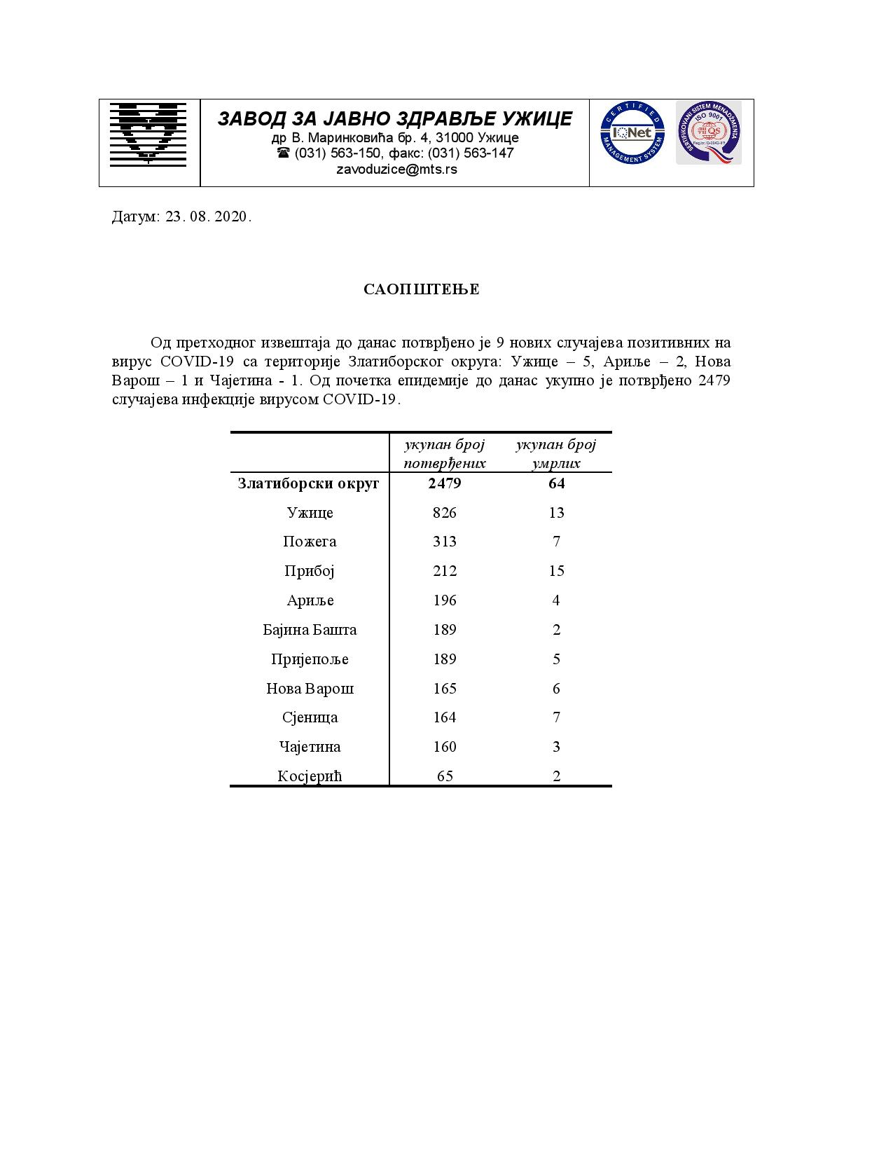 Варош – 1 и Чајетина – 1. Од почетка епидемије до данас укупно је потврђено 2479