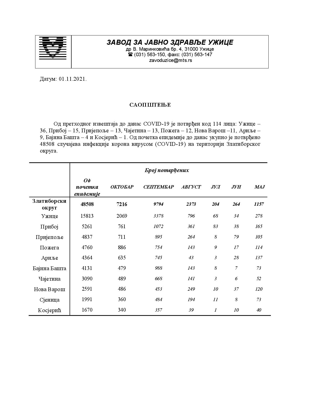 Од претходног извештаја до данас COVID-19 је потврђен код 114 лица: Ужице –