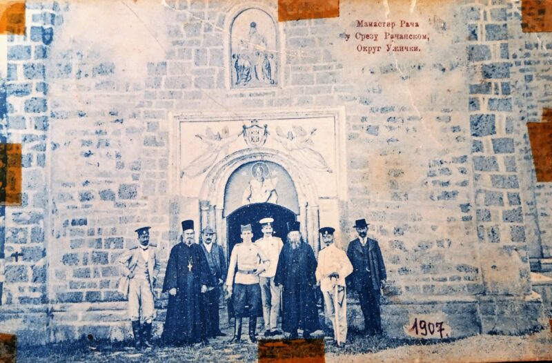Фотографија манастара Рача, коју објављујемо, снимљена је пре више од једног века, тачније 1907. године. Колико нам је познато , досад ниједан аутор ову фотку није користио у својим публикацијама. Нема података ко је све на снимку, претпоставка је да је на слици и тадашњи старешина манастира Рача архимандрит Максим Милетић. „Рачанским манастиром управљао од 1879. до 1911, године. Родом је из Солотуше, завршио је богословске науке у Београду 1867.године и постао је, после Хаџи Мелентија, један од најугледнијих, најспособнијих и најпопуларнијих старешина“ –наводи у књизи „Манастир Рача“ архимандрит Јован Радосављевић.