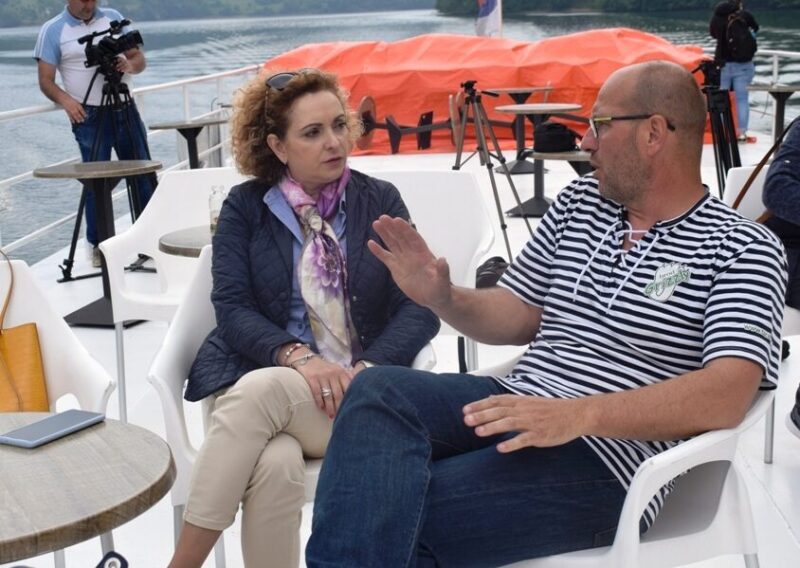-Ове године са радом смо кренули првог маја, знатно раније него лане. То је у неку руку обећавајуће пред нову сезону. Најаве стижу свакодневно тако да ћемо у другој половини јуна имати знатно више посла. За сада до Вишеграда пловимо петком, суботом и недељом. У јулу и августу пловићемо сваким даном, осим понедељка. Ми радимо на стварању такозваног „Чаробног прстена“. Он подразумева вожњу бродом од Перућца до Вишеграда, повратак Шарганском осмицом у Мокру Гору, па аутобусом назад до Перућца. Реализација ће уследити већ овог лета – истакао је Горан Глишић. О лепотама вожње кањоном Дрине до Вишеграда госте је упознао представник Таратурса Недељко Стаменић.