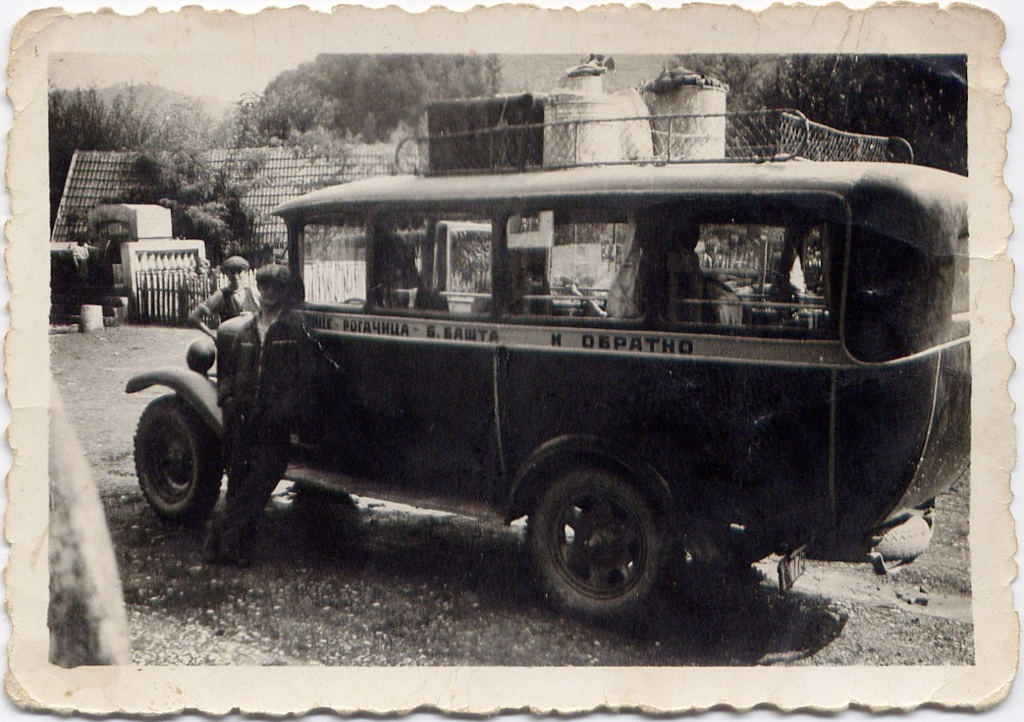 Аутобус који је тридесетих година прошлог века возио на релацији Ужице – Рогачица – Бајина Башта и обратно. Возио га је неки Мијо Шлањо из Бајине Баште. У Рогачици је размењивао пошту и путнике са Радисоваом Симеуновићем из Стрмова, који је возио на релацији Рогачица – Љубовија.