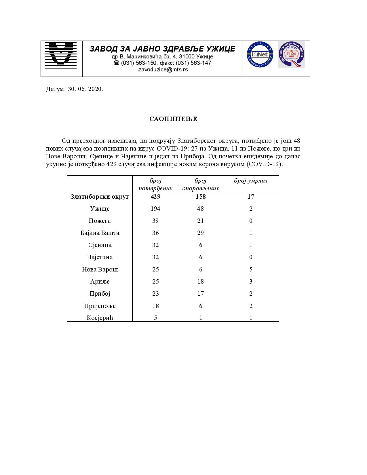 Од претходног извештаја, на подручју Златиборског округа, потврђено је још 48